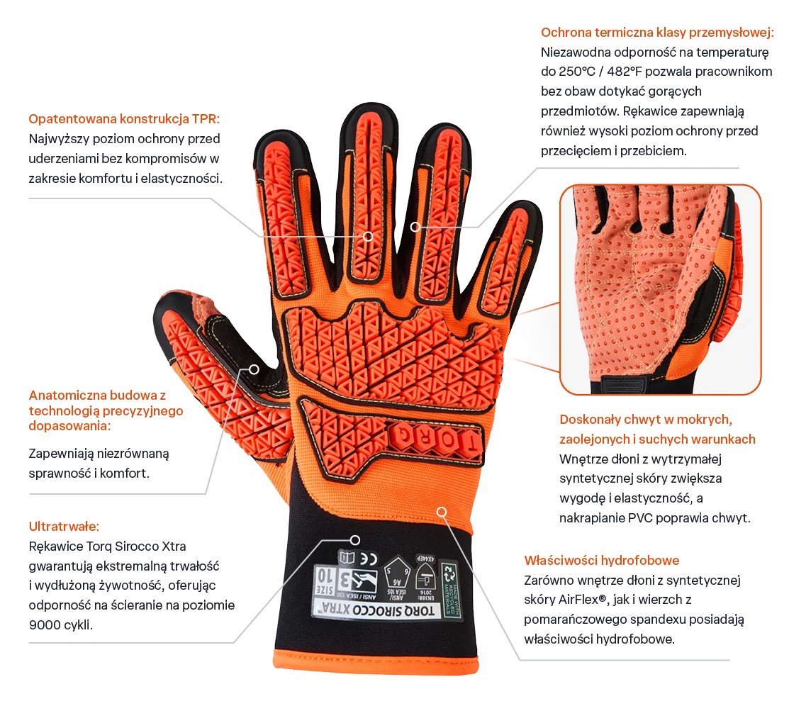 Rękawice Torq Sirocco Xtra to połączenie najwyższej ochrony, ergonomicznej konstrukcji i trwałych materiałów, dzięki czemu doskonale sprawdzają się podczas działań ratownictwa technicznego, drogowego i usuwania skutków wypadków.